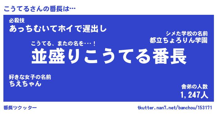 | 伝説のあだ名 | 『不死鳥のスナイパーこうてる』 |