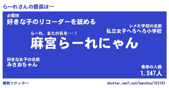 | 肩書あだ名 | 『らーれ社長』『らーれ総理大臣』 |