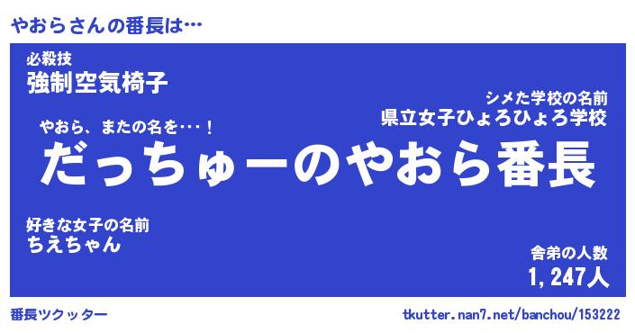 | ヒーロー風カッコイイあだ名 | 『スーパーヤオラ』『ウルトラやおらマン』 |