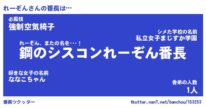 | 意味不明あだ名 | 『ペロリンれーぞん』『永久保存れーぞん』 |