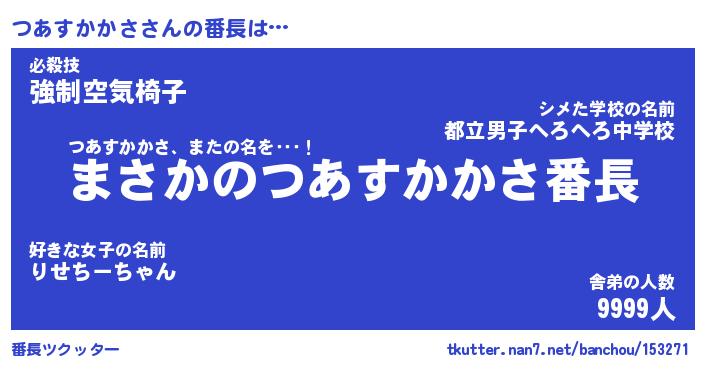 | 肩書あだ名 | 『つあすかかさ社長』『つあすかかさ班長』 |