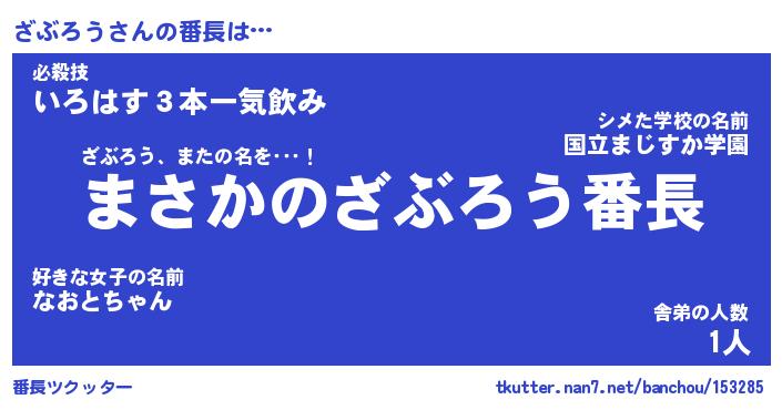 | ファンタジー風あだ名 | 『ザブフェル』『エターナルザブロウー』 |