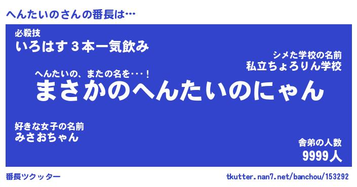 | 伝説のあだ名 | 『伝説のスナイパーへんたいの』 |