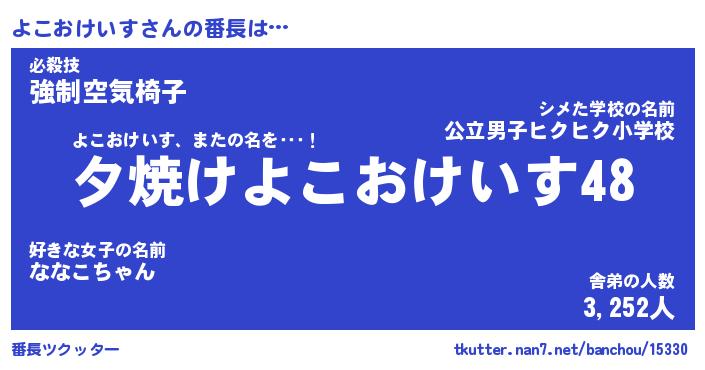 | 伝説のあだ名 | 『封印されしスナイパーよこおけいす』 |