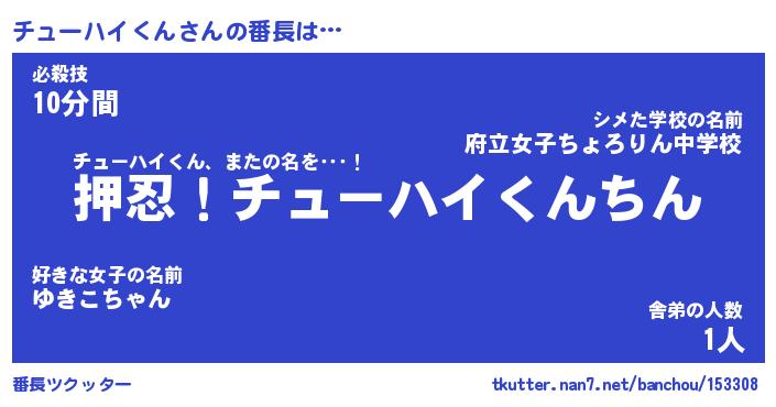 | 2回繰り返すあだ名 | 『チュチュ』『チチュュ』『あんあん』 |