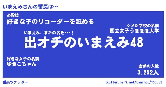 | ポケモン風あだ名 | 『イマチュウ』『イマエダネ』 |
