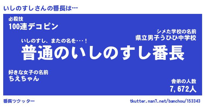 | ヒーロー風カッコイイあだ名 | 『スーパーイシノスシ』『天弓騎士イシ』 |