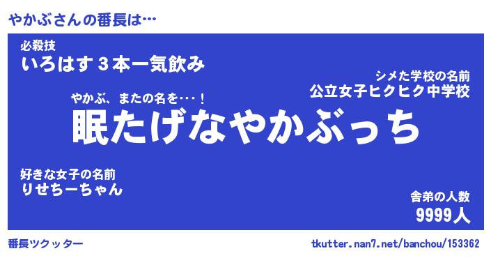 | ヒーロー風カッコイイあだ名 | 『スーパーヤカブ』『ウルトラやかぶマン』 |