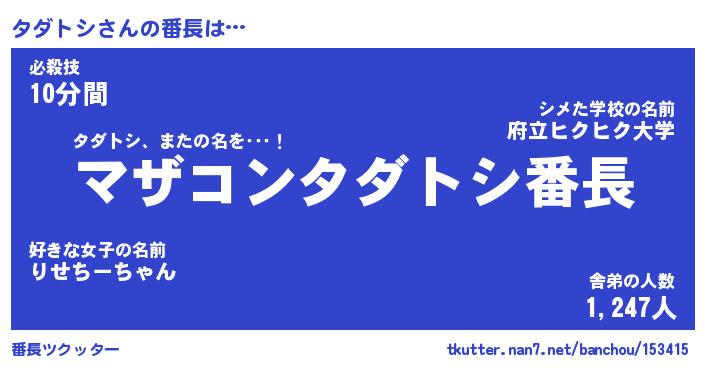 | 意味不明あだ名 | 『ペロリンタダトシ』『永久保存タダトシ』 |