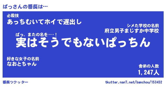 | 意味不明あだ名 | 『ペロリンぱっ』『ぱっフォーエバー』 |