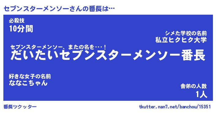 | ヒーロー風カッコイイあだ名 | 『スーパーセブンスターメンソー』 |