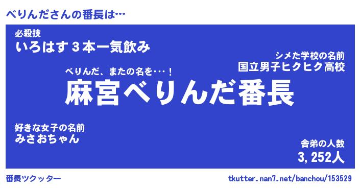 | 意味不明あだ名 | 『ペロリンべりんだ』『永久保存べりんだ』 |