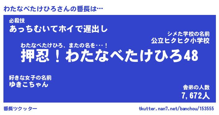| 伝説のあだ名 | 『封印されしスナイパーわたなべたけひろ』 |