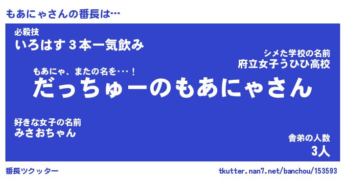 | ヘコむあだ名 | 『もあにゅー』『つくし』『もあっぺ』 |