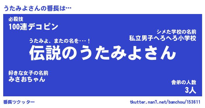 | 伝説のあだ名 | 『伝説のスナイパーうたみよ』 |