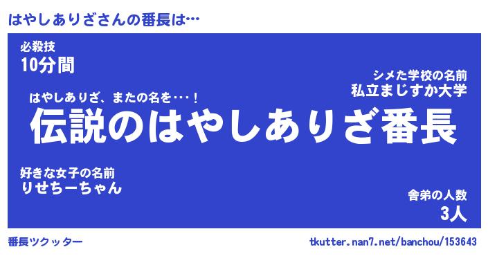 | 肩書あだ名 | 『はやしありざ社長』『はやしありざ班長』 |