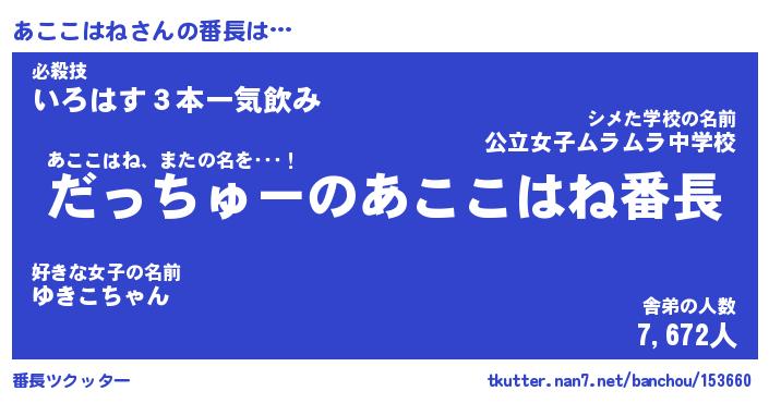 | 肩書あだ名 | 『あここはね社長』『あここはね総理大臣』 |