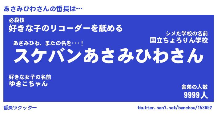 | ヘコむあだ名 | 『あさにゅー』『酢こんぶ』 |