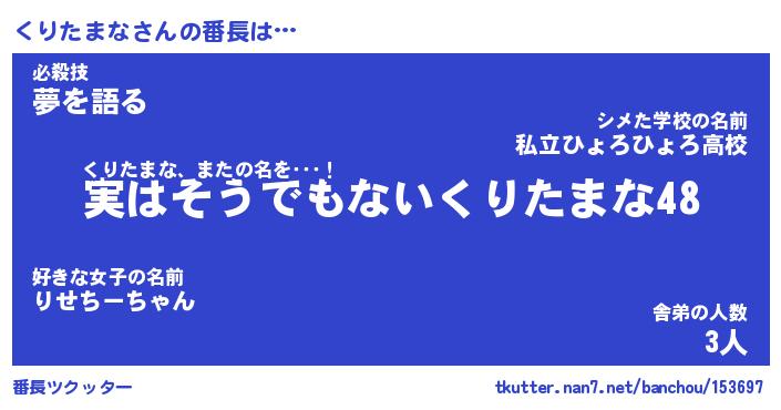 | 肩書あだ名 | 『くりたまな店長』『くりたまな大統領』 |