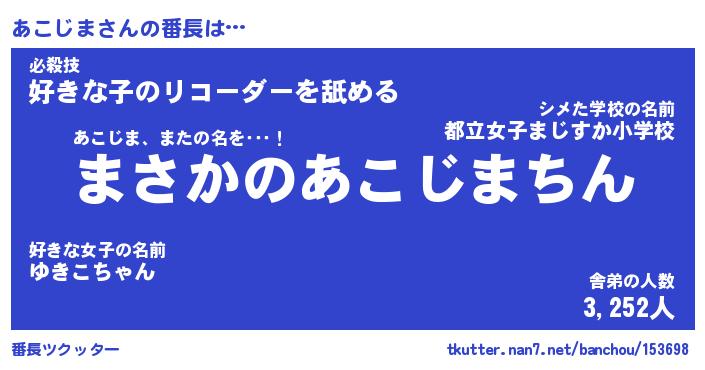 | 意味不明あだ名 | 『ペロリンあこじま』『永久保存あこじま』 |