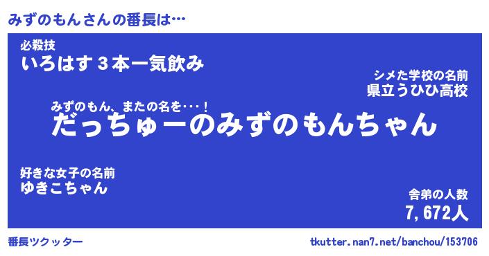 | 男性向けラノベタイトル風あだ名 | 『みずのもんの憂鬱』 |