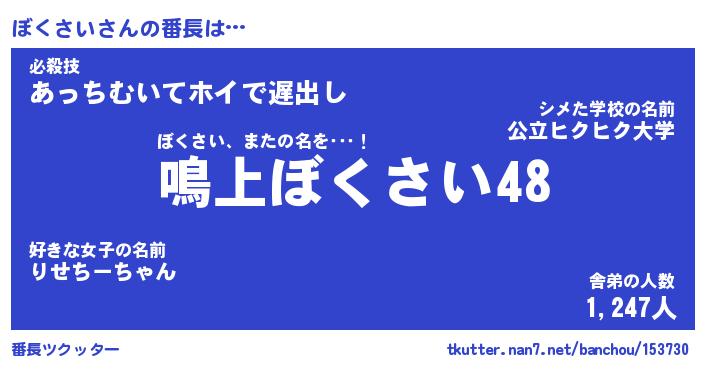 | 意味不明あだ名 | 『ペロリンぼくさい』『永久保存ぼくさい』 |