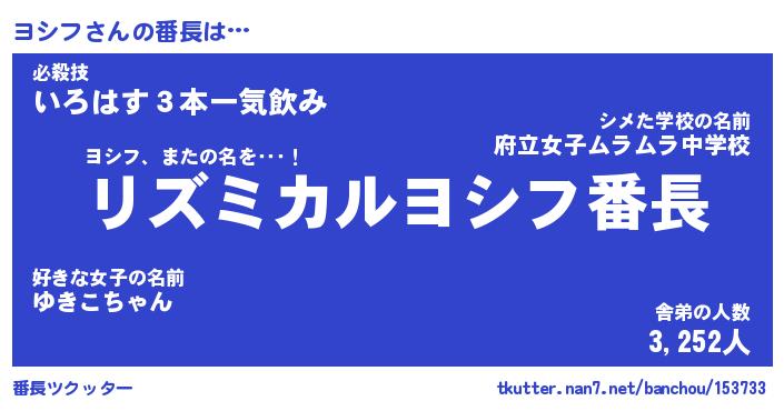 | 意味不明あだ名 | 『ペロリンヨシフ』『ヨシフフォーエバー』 |