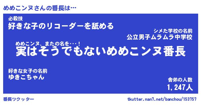 | 2回繰り返すあだ名 | 『めめめめ』『めめめめ』『にたにた』 |
