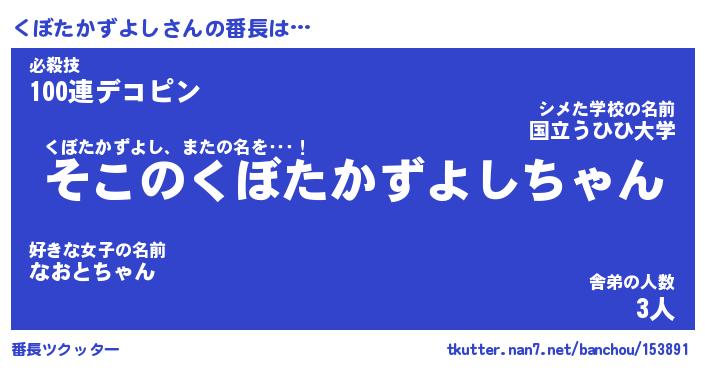 | ヒーロー風カッコイイあだ名 | 『スーパークボタカズヨシ』 |