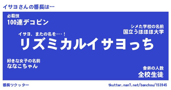 | ピコ太郎風あだ名 | 『イコ二郎』『ピイ太郎』『イサ六郎』 |