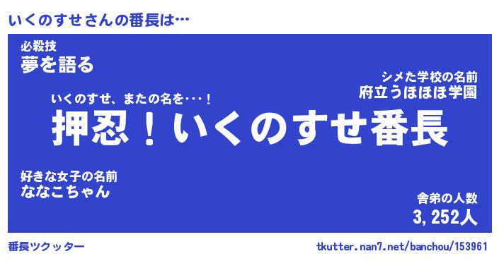 | ヒーロー風カッコイイあだ名 | 『スーパーイクノスセ』『黄金騎士イク』 |