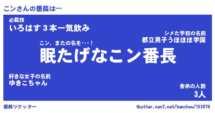 | ヘコむあだ名 | 『こンもー』『なまこ酢』『こンっ子』 |