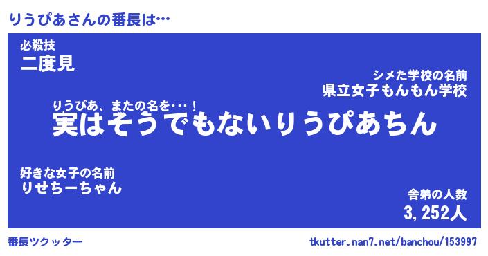 | 肩書あだ名 | 『りうぴあ御曹司』『りうぴあ大統領』 |