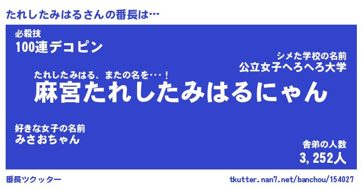 | ツイッター | たれしたみはるさんのツイッターID『dendenmushi_star』 |