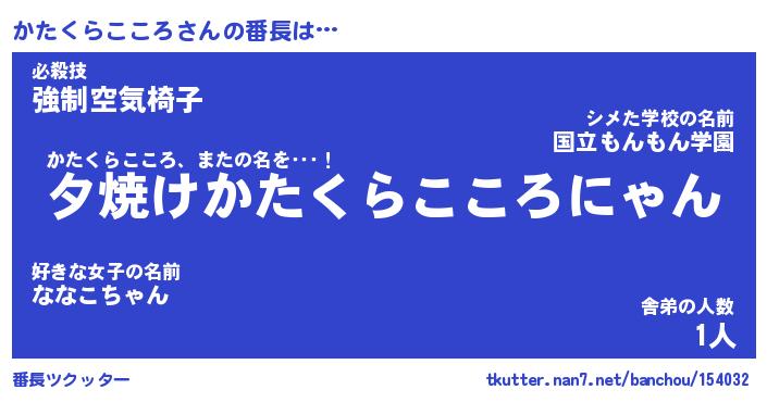 | 伝説のあだ名 | 『封印されしスナイパーかたくらこころ』 |