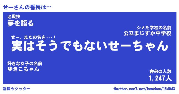 | ヒーロー風カッコイイあだ名 | 『スーパーセー』『ウルトラせーマン』 |