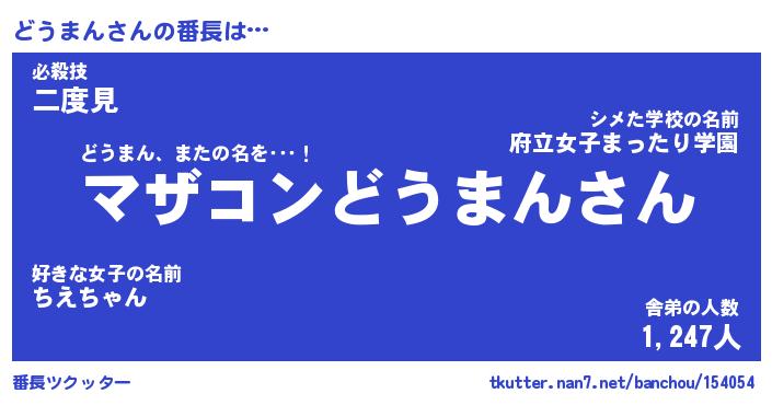 | ポケモン風あだ名 | 『ドウチュウ』『ドウマダネ』 |