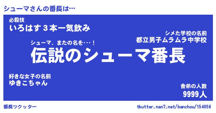 | 伝説のあだ名 | 『伝説のスナイパーシューマ』 |