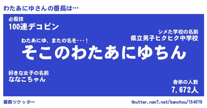 | ヒーロー風カッコイイあだ名 | 『スーパーワタアニユ』『銀牙騎士ワタ』 |