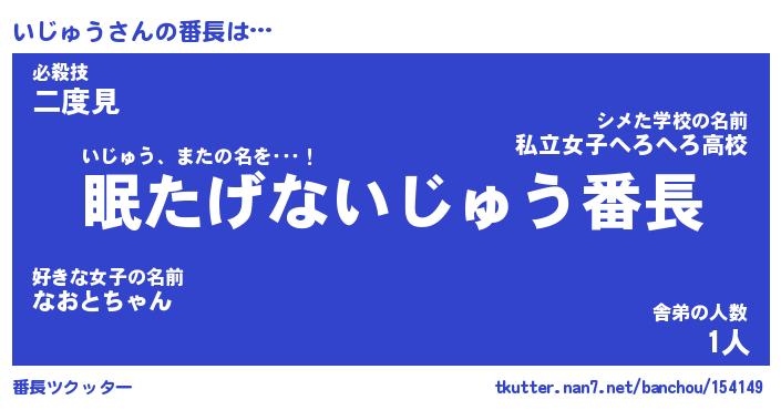 | 2回繰り返すあだ名 | 『いじいじ』『いいじじ』『いそいそ』 |