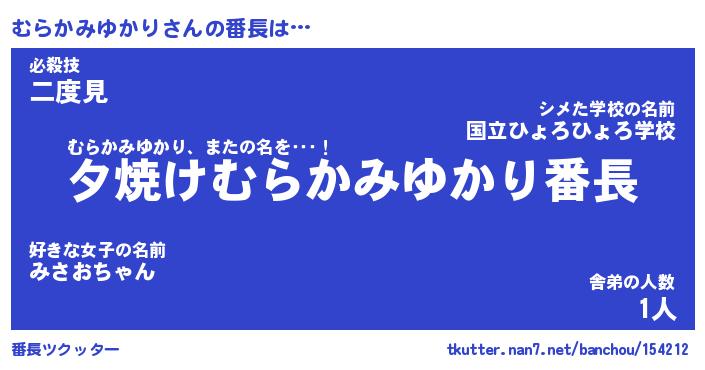| 伝説のあだ名 | 『封印されし竜騎士むらかみゆかり』 |
