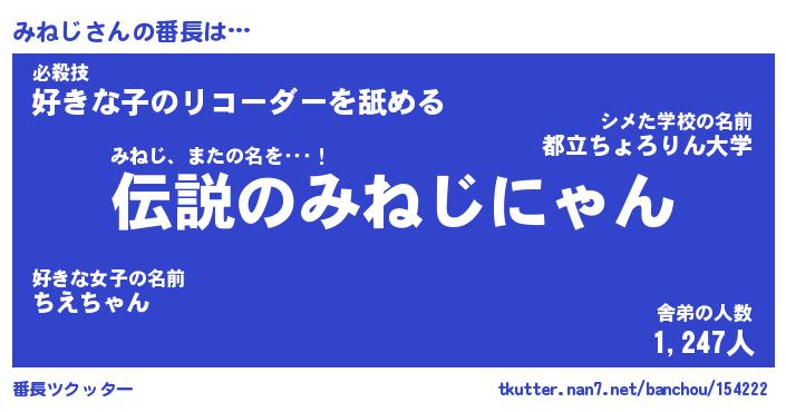 | 意味不明あだ名 | 『ペロリンみねじ』『みねじフォーエバー』 |