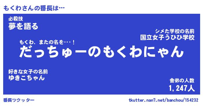 | ヒーロー風カッコイイあだ名 | 『スーパーモクワ』『ウルトラもくわマン』 |