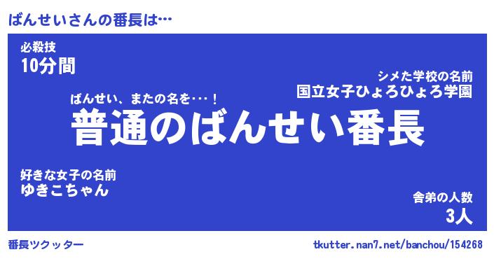 | 意味不明あだ名 | 『ペロリンばんせい』『永久保存ばんせい』 |