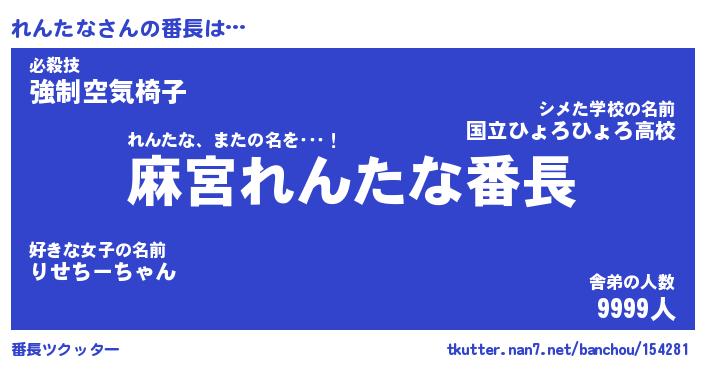 | ファンタジー風あだ名 | 『レンフェル』『エターナルレンタナー』 |