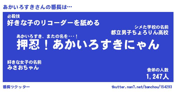 | ヘコむあだ名 | 『あかにー』『酢こんぶ』 |