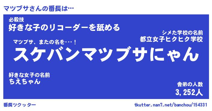 | ファンタジー風あだ名 | 『マツフェル』『エターナルマツブサー』 |
