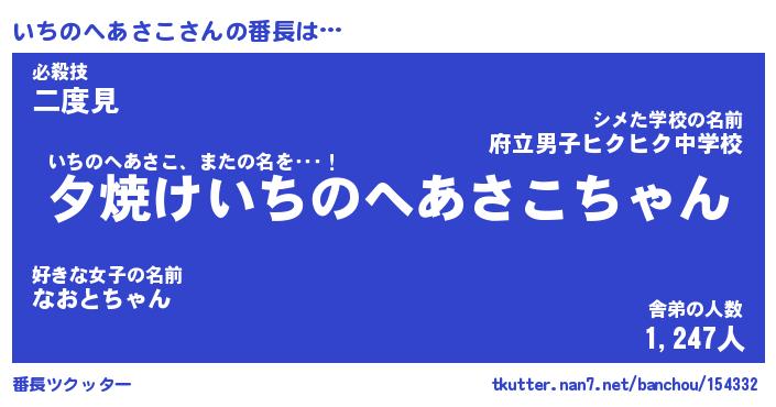 | 伝説のあだ名 | 『封印されしスナイパーいちのへあさこ』 |