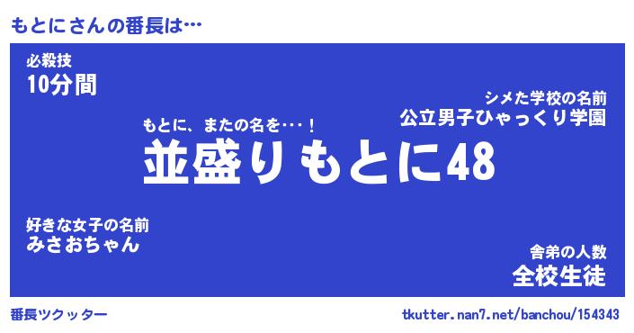 | ヒーロー風カッコイイあだ名 | 『スーパーモトニ』『ウルトラもとにマン』 |
