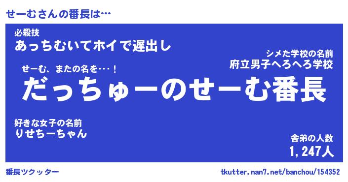 | 肩書あだ名 | 『せーむ店長』『せーむ総理大臣』 |